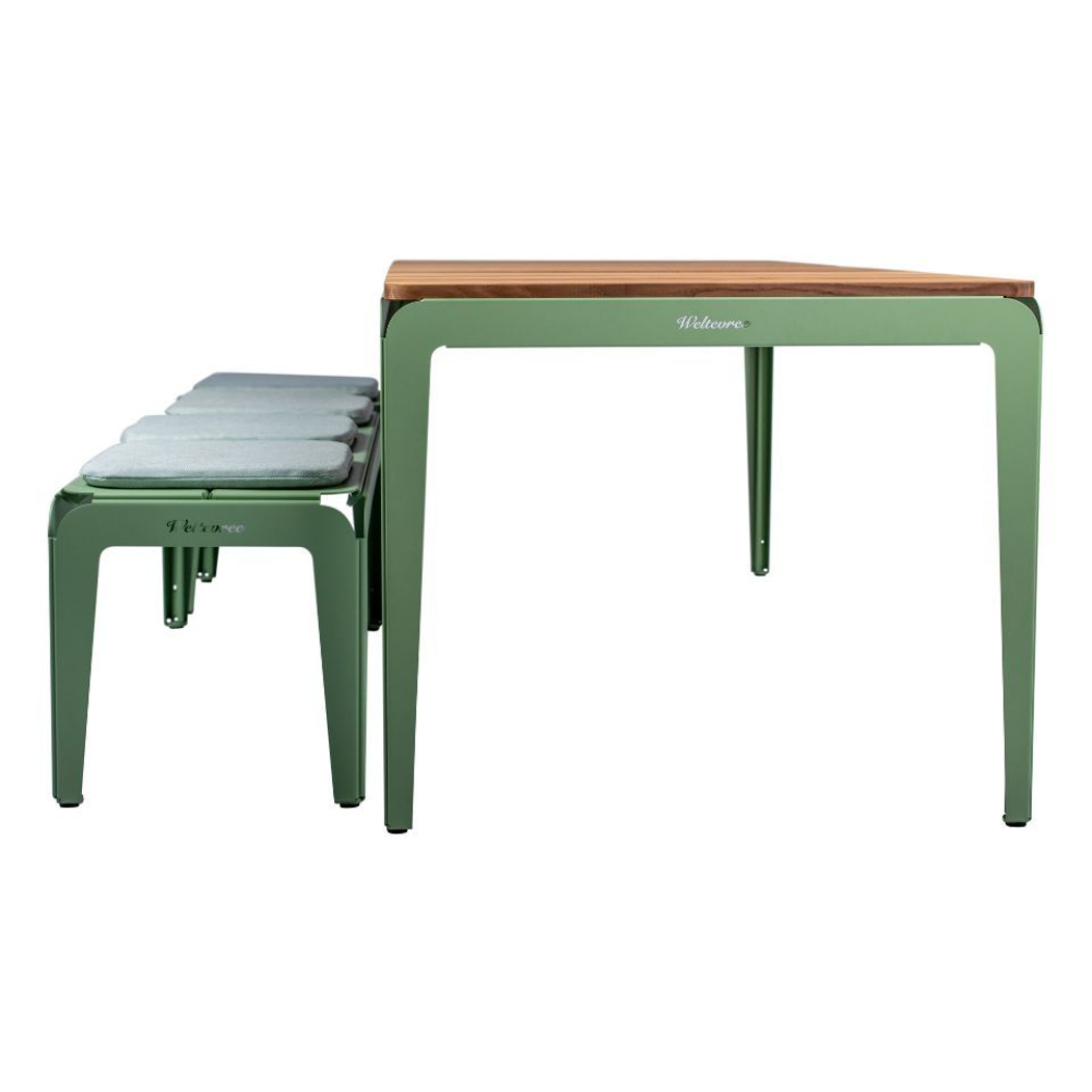 De Bended table wood is een uitbreiding van de welbekende Bended Series. De tafel heeft een gerecycled tafelblad van bamboe, deze is thermisch behandeld. Dat betekent dat het hout is “gebakken” op een hoge temperatuur, hierdoor word het hout sterker en is daarom zeer geschikt voor buiten. De tafel heeft geen scherpe hoeken doordat de stalen poten van de tafel zijn gebogen in een hoek van 45 graden. Hoe oneven de grond ook is, de slimme en lichte Bended Table zal niet wiebelen.