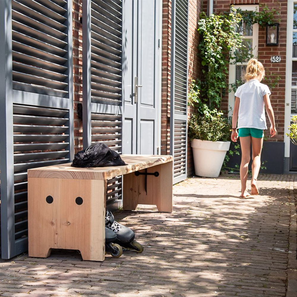 De Forestry bench is gemaakt met lokaal Douglas hout uit de staatsbossen in Nederland.