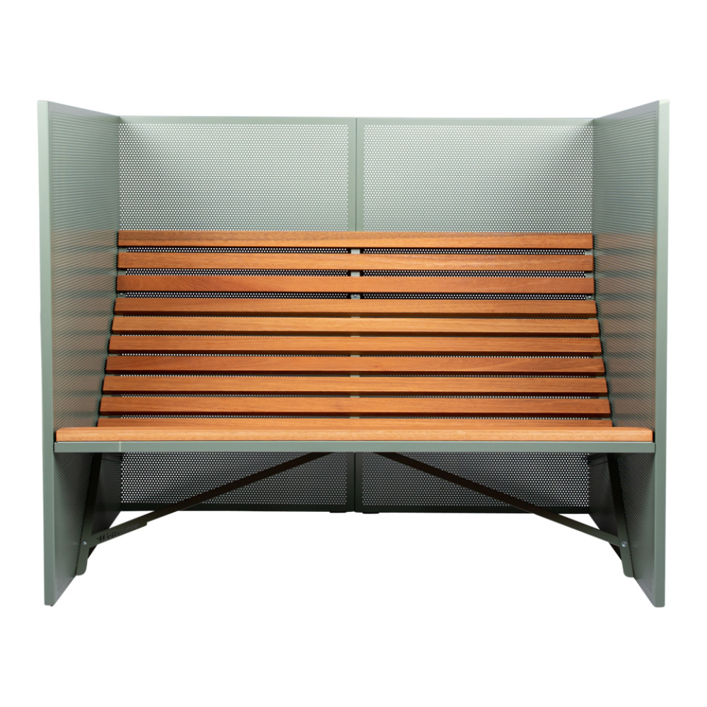 De Patiobench High heeft een slim ontwerp dat dit houten bankje echt gemakkelijk en ontspannen maakt om in te zitten, zonder tuinkussens nodig te hebben. De latten zijn in zo’n hoek geplaatst dat ze de exacte vormen van het lichaam volgen om optimaal zitgemak en ondersteuning te bieden. De Patiobench High is beschikbaar in Oxide Red, Gray Blue en Pale Green.