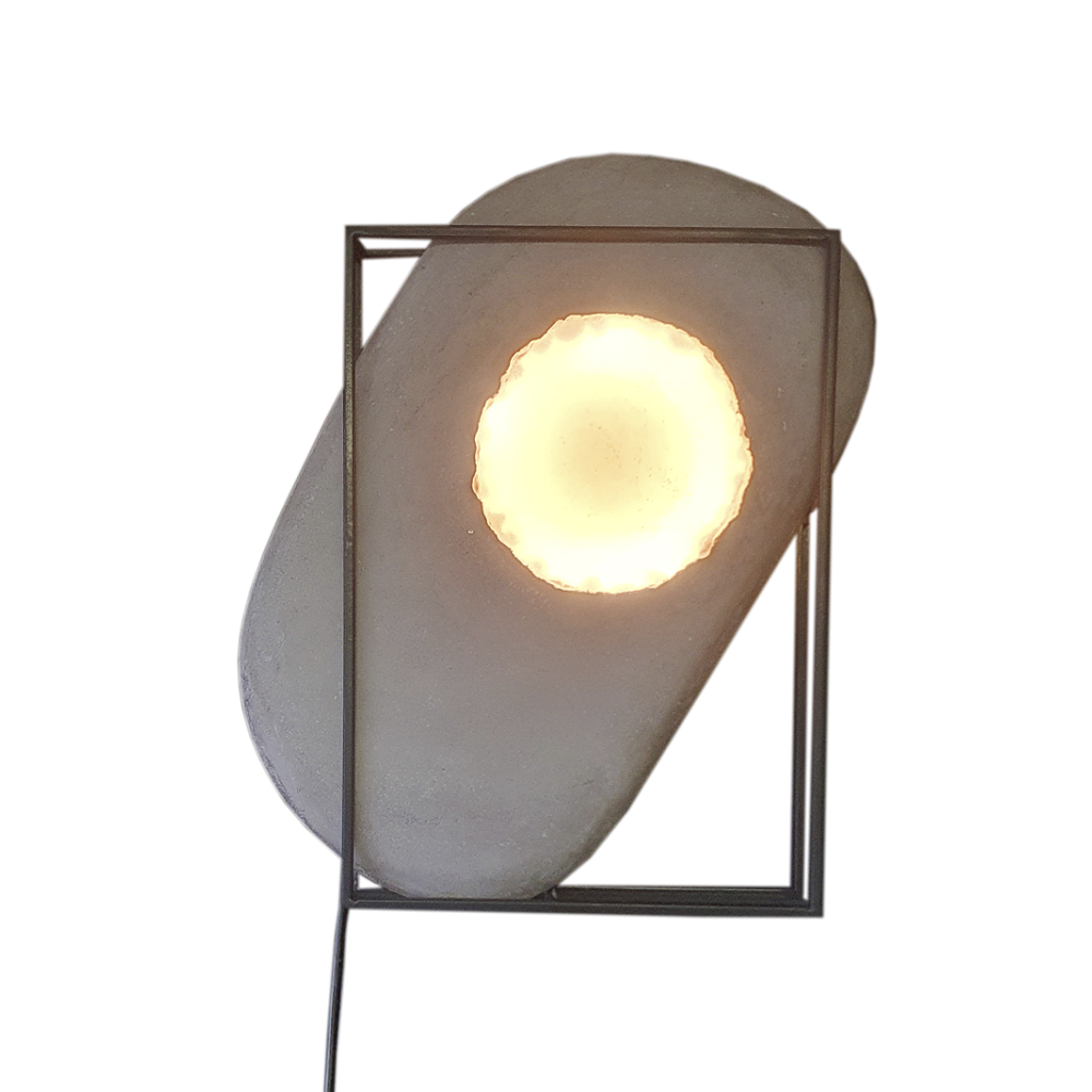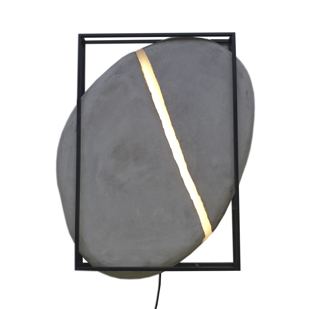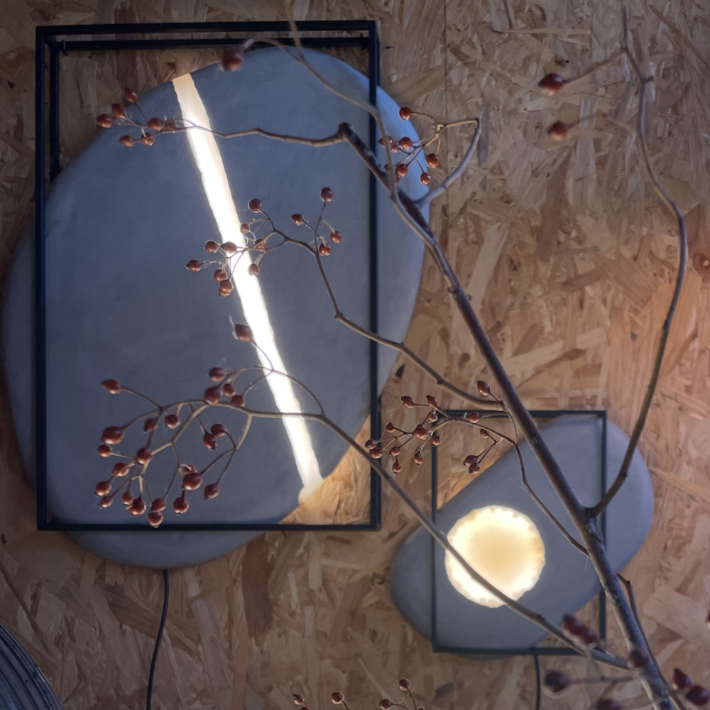 Het zijn handgemaakte lichtobjecten van eco-vriendelijk beton + siliconen met led-verlichting en een minimalistisch zwart frame. UNIEK!