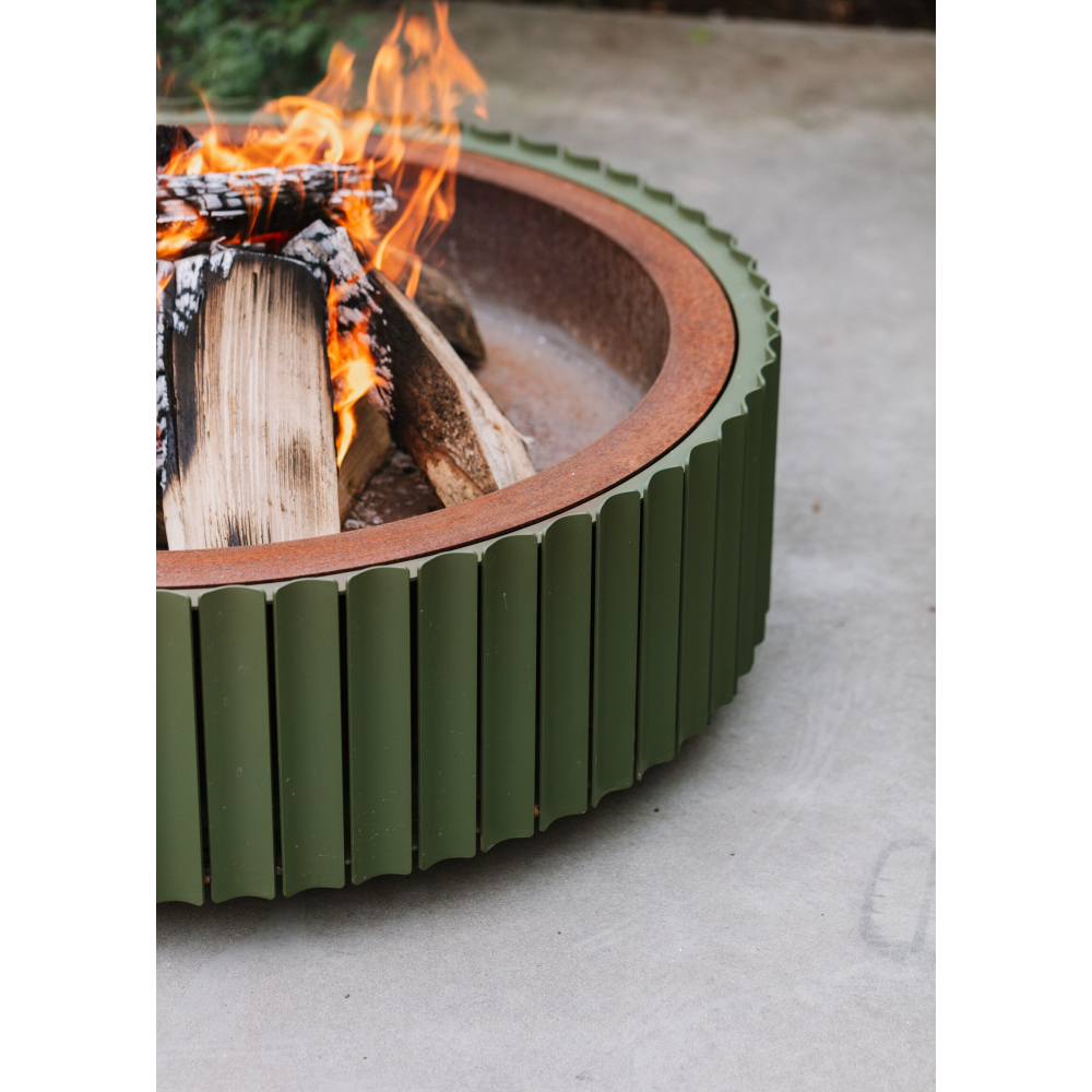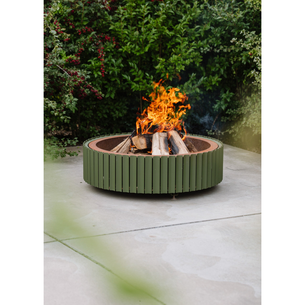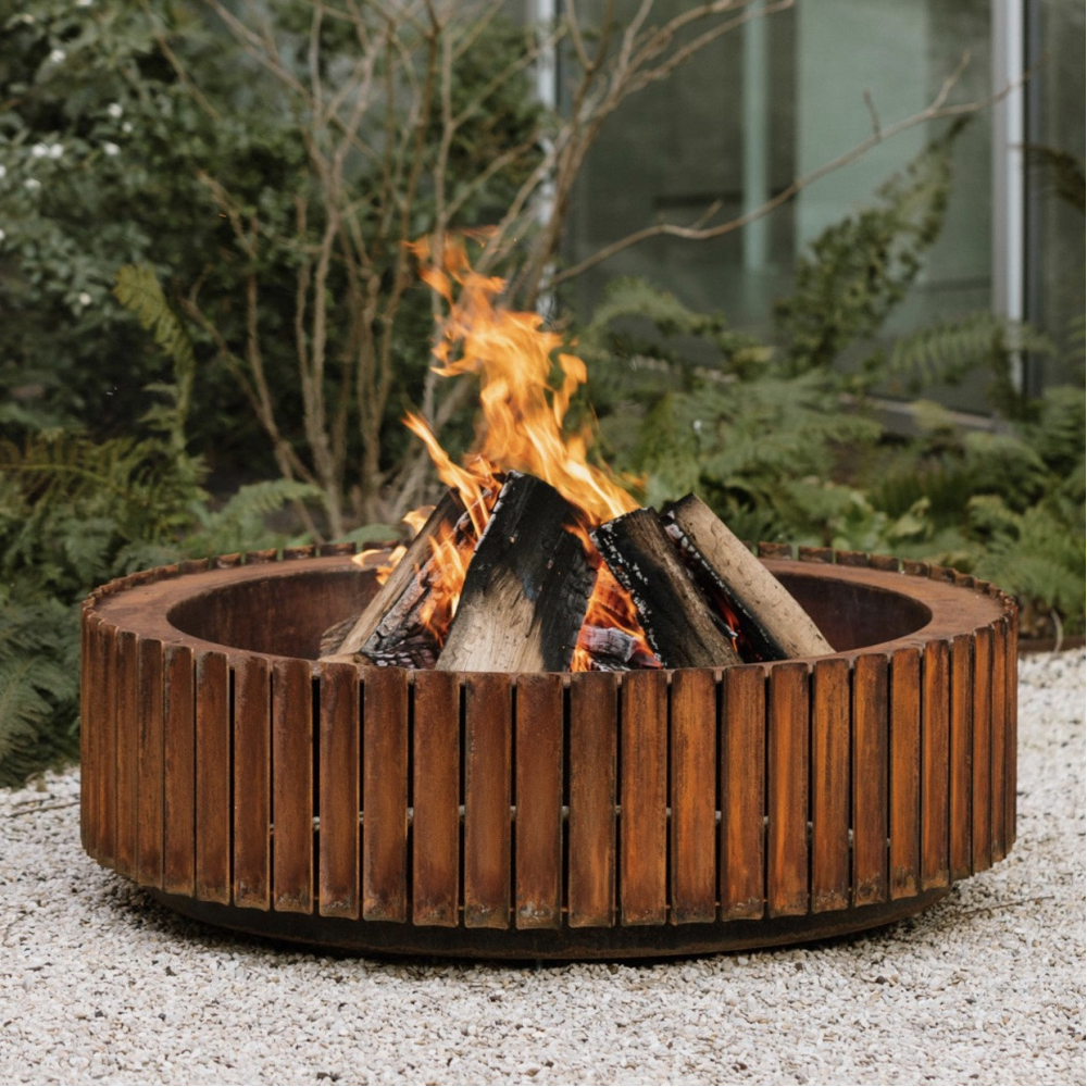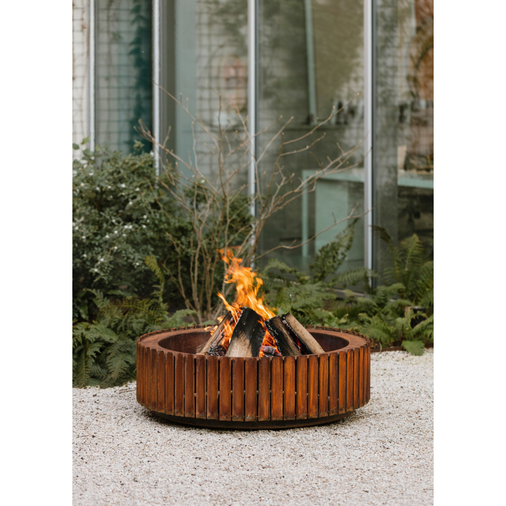 The Ring is vervaardigd uit hoogwaardig Cortenstaal. Dit materiaal is robuust en duurzaam in gebruik. De ronde vorm heeft aan de zijkant openingen tussen de lamellen. Hierdoor komt er voldoende zuurstof bij het vuur en is er weinig rook. The Ring heeft een diameter van 105 centimeter en is voorzien van pootjes. Hierdoor lijkt de ronde vorm te zweven.