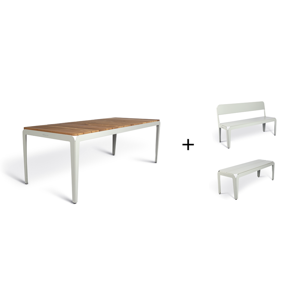 bended table wood + bended bench + bended bench met rugleuning